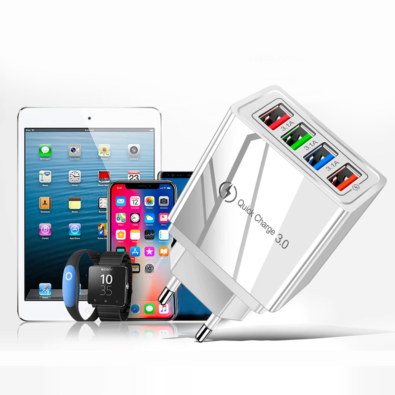 Universal charger that allows you to charge 3 USB devices at the same time. With Quick Charge QC 3.0 makes charging faster.